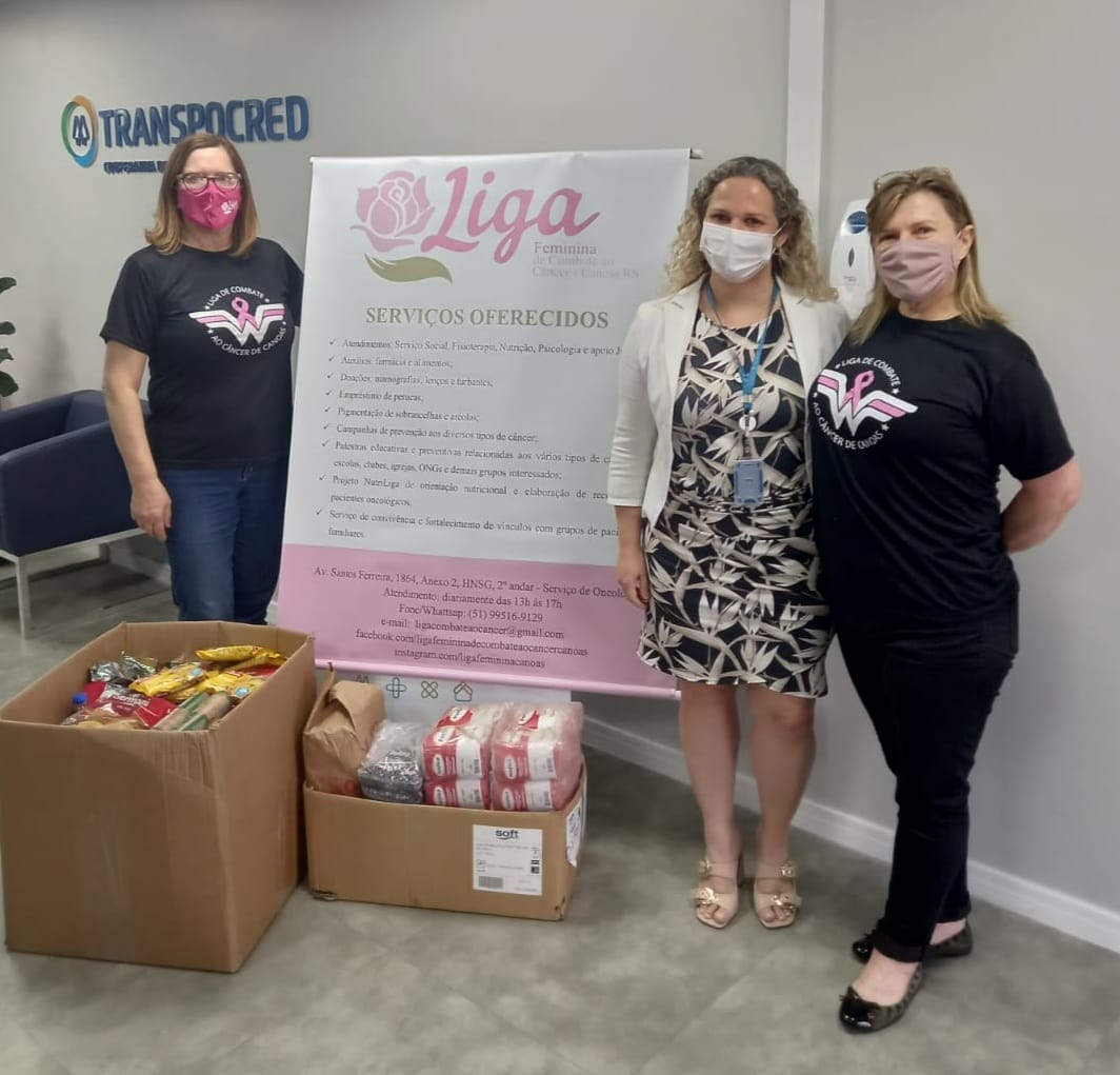 “Nós arrecadamos muitas coisas: massa, arroz, feijão… No final, enchemos várias caixas”, comemorou Carine Cardoso, gerente da Transpocred. “Escolhemos doar parte para a Liga Feminina de Combate ao Câncer de Canoas, pois sabemos do trabalho que elas fazem para arrecadar alimentos para as pacientes carentes de câncer de mama.”